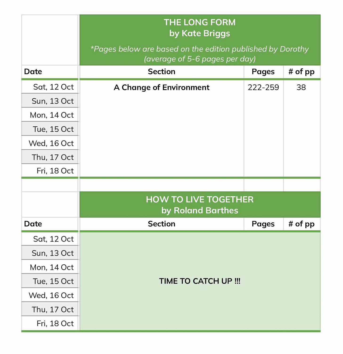 Hello! Our next video call will take place on Sunday, October 20th, at 12pm PDT, 3pm EDT, and 8pm BST. All are welcome! We have no expectations about how much people have read. If this is your first meeting or you’ve been with us all along, you are welcome either way. If a conversation about Kate Briggs and Roland Barthes sounds fun to you, please join! I will send out our meeting link a day or two before we meet.