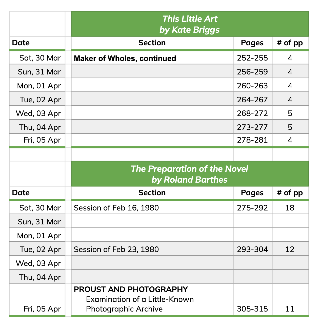 This Little Art, p. 252-309; Sessions of Feb. 16 & 23, 1980; Proust and Photography