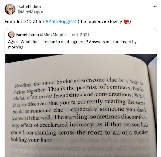 I hope your reading — whatever it is — is going well! Share some thoughts?